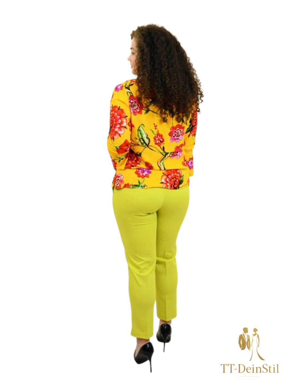 Farbe: Sonnengelb mit floralem Print in Rot, Pink, Lila und Grün