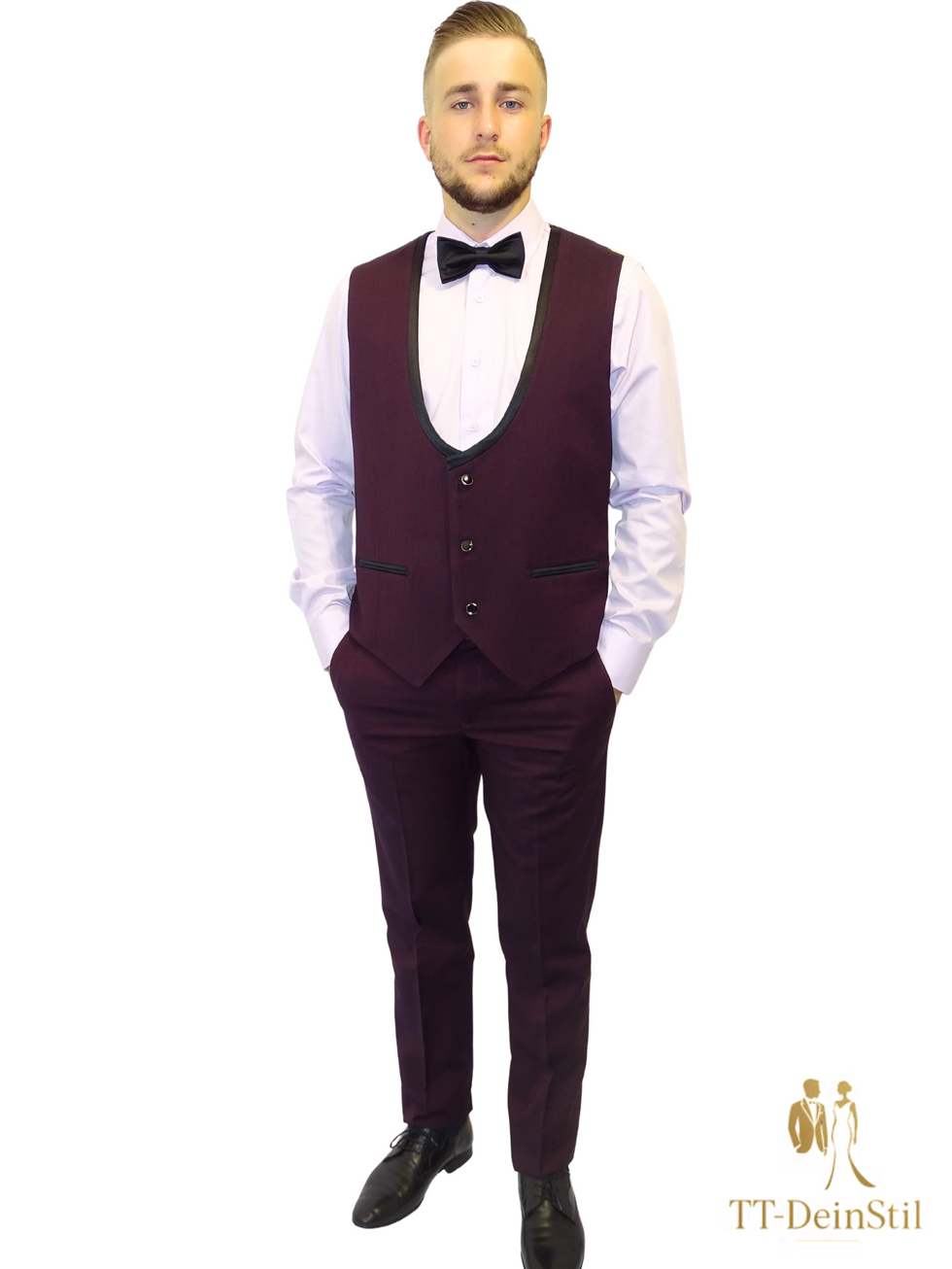 Herrenanzug „Noir Bordeaux“ mit Satin-Revers, Weste & Fliege (4Teilig)