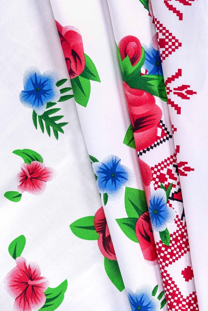 Farbe: Weiß mit buntem Blumen- und Bordürenmuster